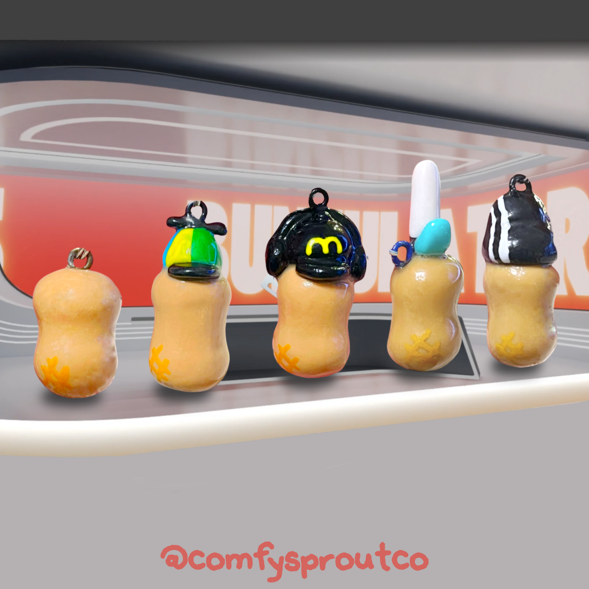 Ā A tiny, hand-sculpted peanut with legendary energy and an iconic rotation of hats. Each polymer clay charm captures that unmistakable peanut attitudeāready to say āletās rideā at a momentās notice and proudly repping bungulator nation wherever it goes.š„